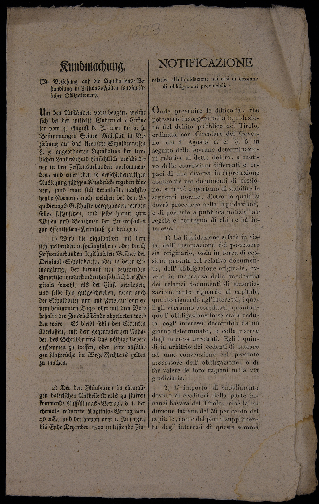 | Kundmachung. (In Beziehung auf die Liquidations-Behandlung in Zessions-Fällen landschäftlicher Obligationen) |