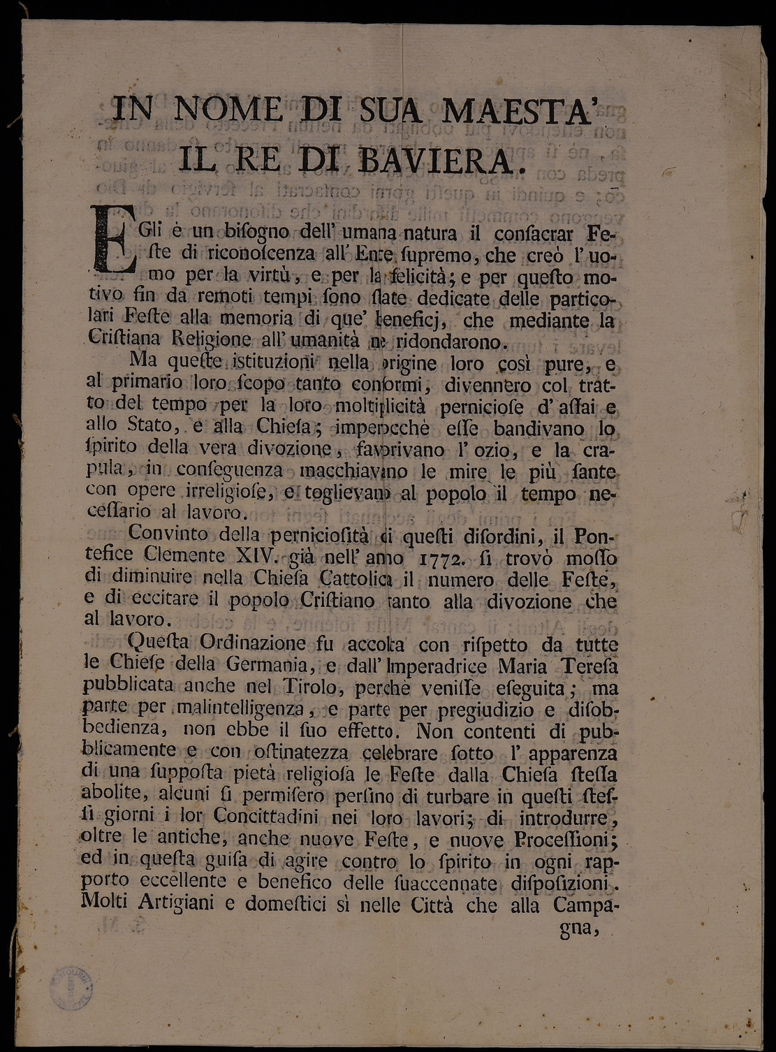 Egli è un bisogno dell'umana natura il consacrar feste di riconoscenza all'Ente supremo, che creò l'uomo per la virtù, e per la felicità ...