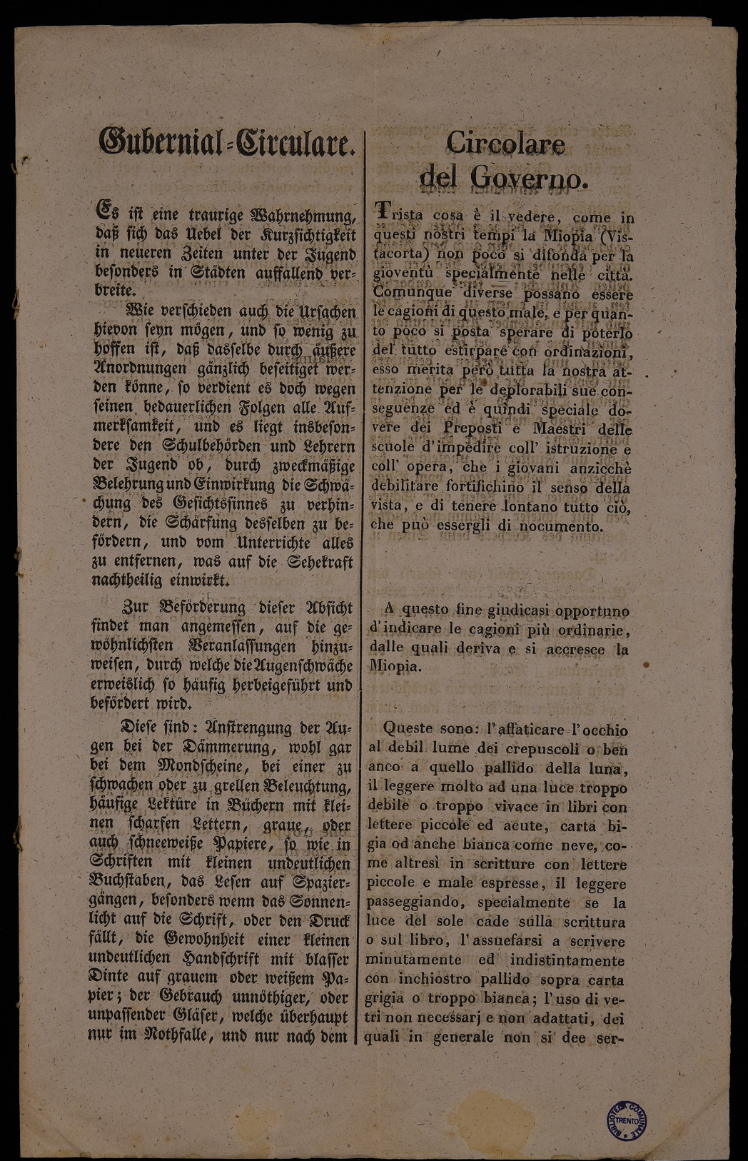 Es ist eine traurige Wahrnehmung, dass sich das Uebel der Kurzsichtigkeit in neueren Zeiten unter der Jugend besonders in Städten auffallend verbreite ...