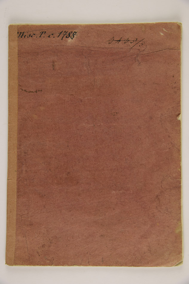 Legato in cartoncino rosso con talloncino rosso chiaro di rinforzo al dorso, mm. 195x140, ex libris della Biblioteca al verso del piatto anteriore, timbri della Biblioteca al frontespizio e a c. b4v, presenza di numerosi segni di attenzione a matita, numero d'inventario P/8140 a c. b4v, provenienza: Collezione Mazzetti, antiche segnature di collocazione: 7193 (Mazzetti, al frontespizio), 3435/5, Misc. T c 1788 (Comunale).