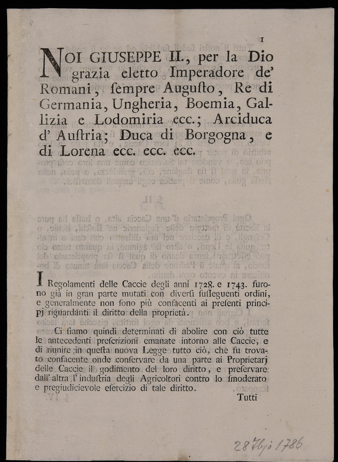| Noi Giuseppe II., per la Dio grazia eletto Imperadore de' romani, sempre Augusto, re di Germania ... |
