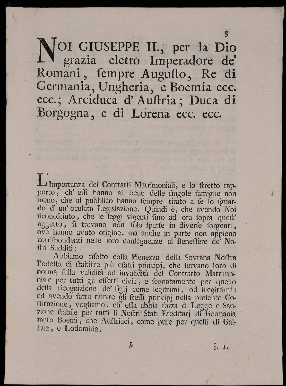 Noi Giuseppe II., per la Dio grazia eletto Imperadore de' romani, sempre...