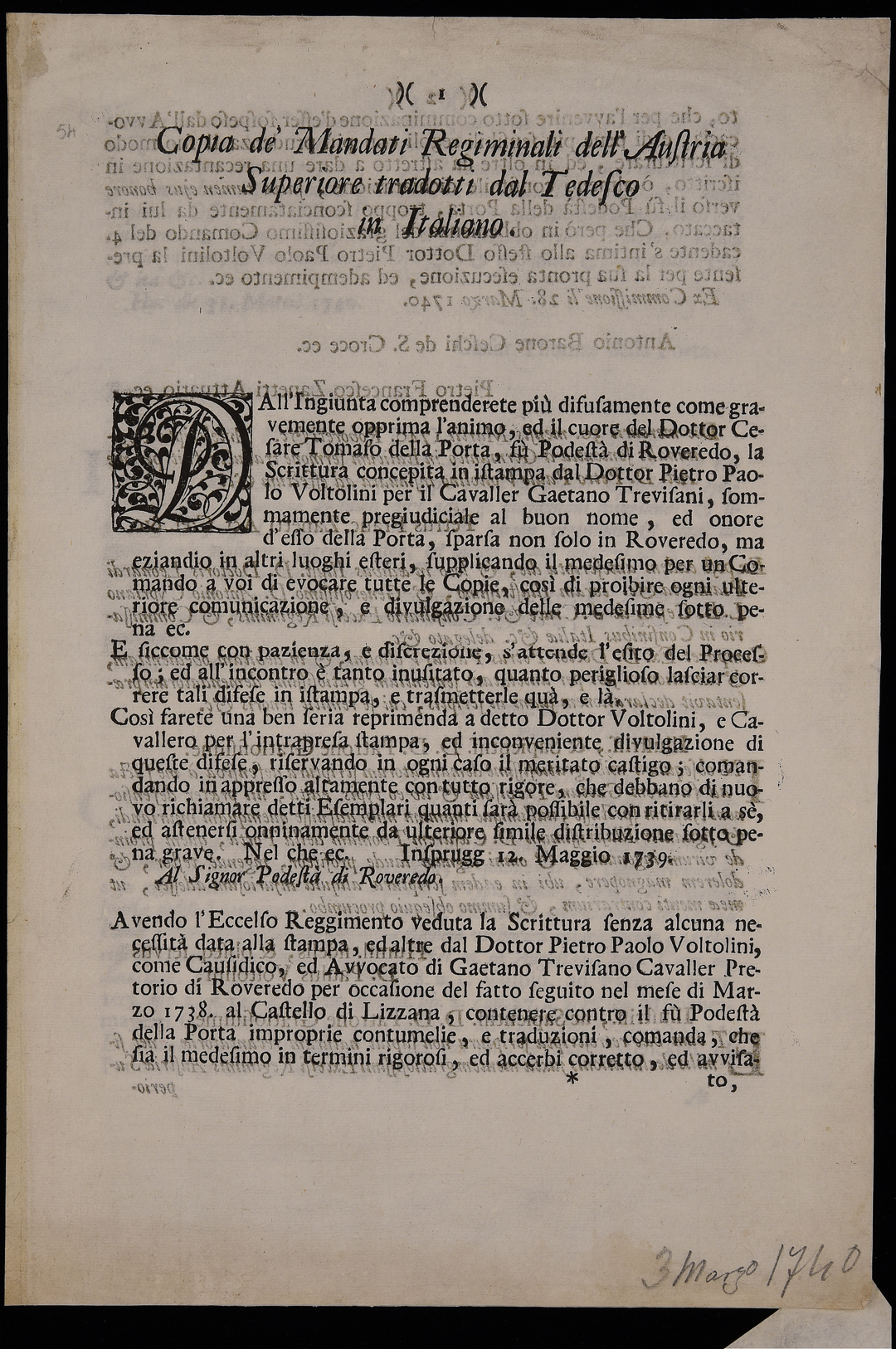 | Copia de' mandati regiminali dell'Austria superiore tradotti dal tedesco in italiano |