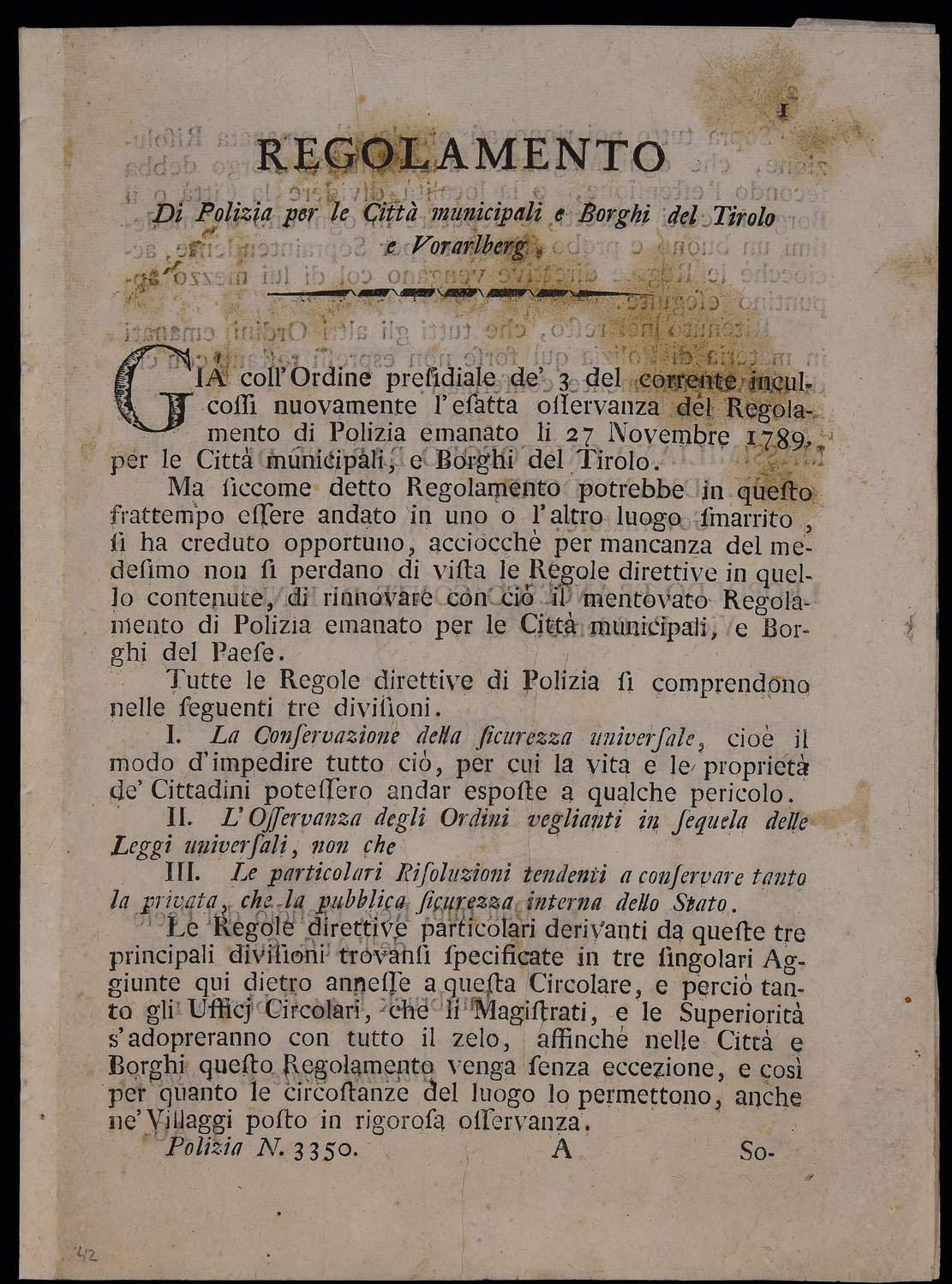 Regolamento di polizia per le città municipali e borghi del Tirolo e Vorarlberg