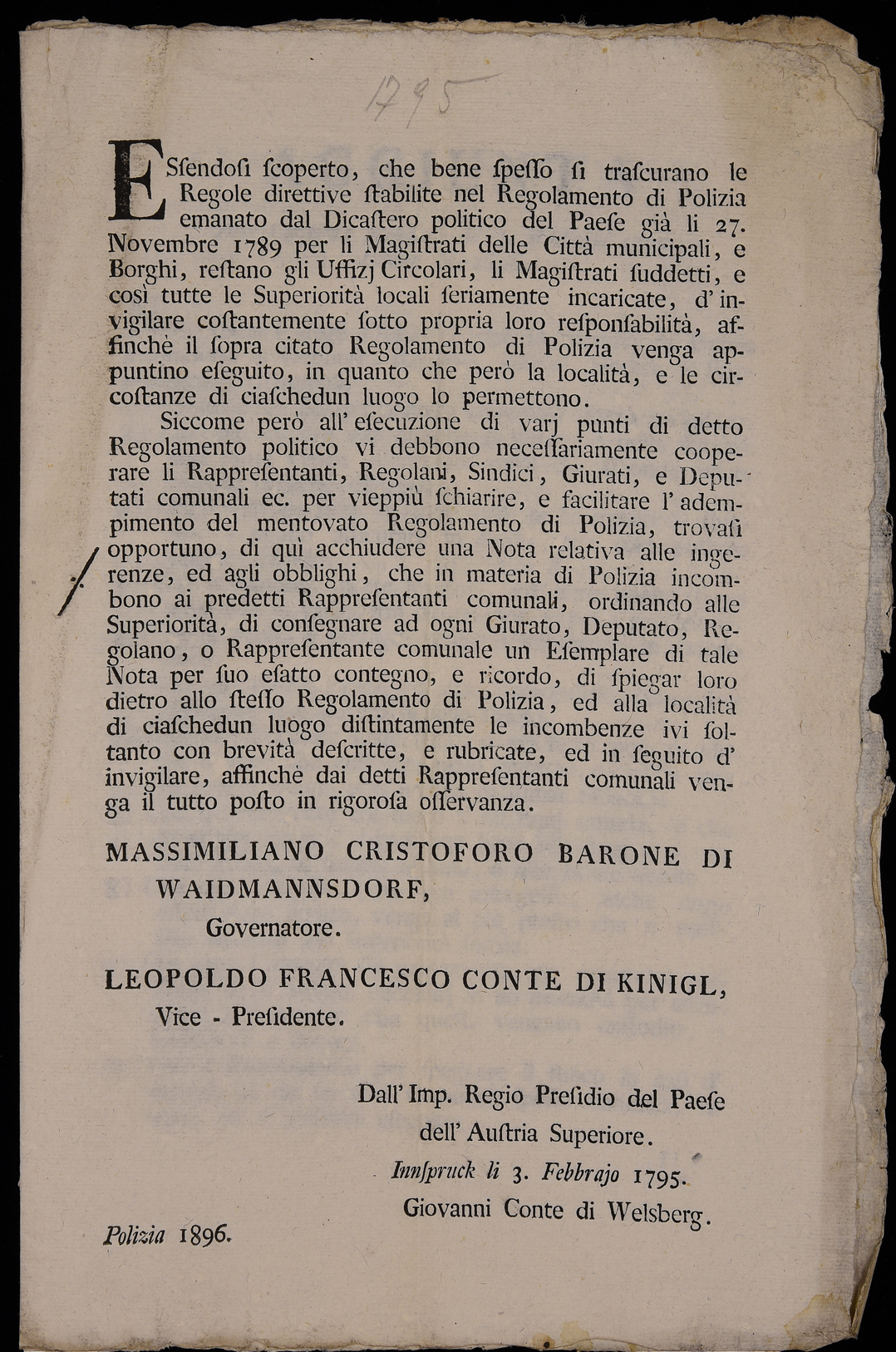 | Essendosi scoperto che bene spesso si trascurano le regole direttive stabilite nel regolamento di polizia ... |