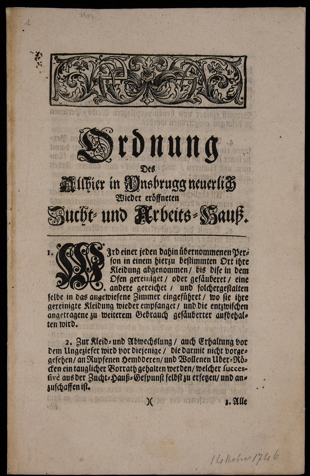| Ordnung des allhier in Ynsbrugg neuerlich wieder eröffneten Zucht-und Arbeits-Hauss |