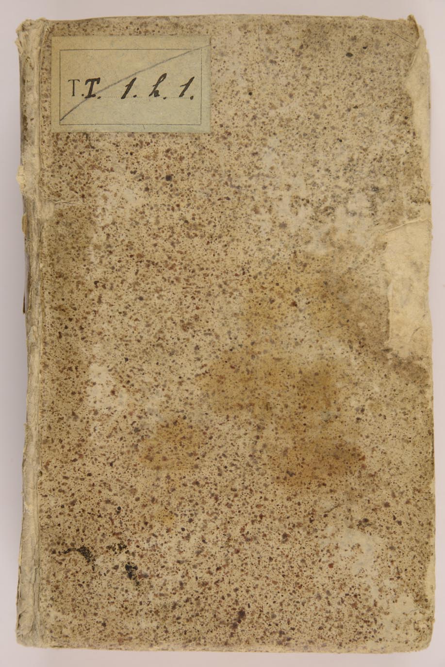 Legato in cartoncino rigido con carta spruzzata di inchiostro, titolo manoscritto al dorso, tagli colorati di rosso, c. di guardia ant. e post., mm. 160x100x45, ex libris reso illeggibile al verso del piatto anteriore (iste liber spectat Gio[...]), ex libris della Biblioteca ivi, nota di possesso al recto della c. di guardia ant., parzialmente cancellata (iste liber spectata ad me [...] de [...], anche se con qualche margine di dubbio si legge il nome di Georgius, mentre il cognome è del tutto illeggibile), segno di attenzione a c. D4r, timbri della Biblioteca al frontespizio e a c. 2L2v, numero d'inventario X/1580 a c. 2L2v, antiche segnature di collocazione della Comunale: TT 1 h 1, TT k 22.