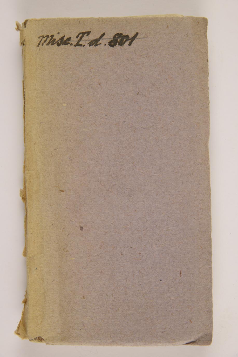 Legato in cartoncino vinaccia, c. di guardia post., mm. 130x75x10, ex libris della Biblioteca al verso del piatto anteriore, nota di possesso al frontespizio: Iosephi Plotner e numero 7 a matita in testa al frontespizio, sottolineature a matita rossa alle cc. A4v-A5r, A6r-A9r, A11, A12v, B2, B3v-B4r, B5v e B7r, segni di attenzione al margine alle cc. A9r, A12r, numero d'inventario P/8533 a c. D12v, provenienza: Joseph Plonter, antica segnatura di collocazione: Misc T d 801.