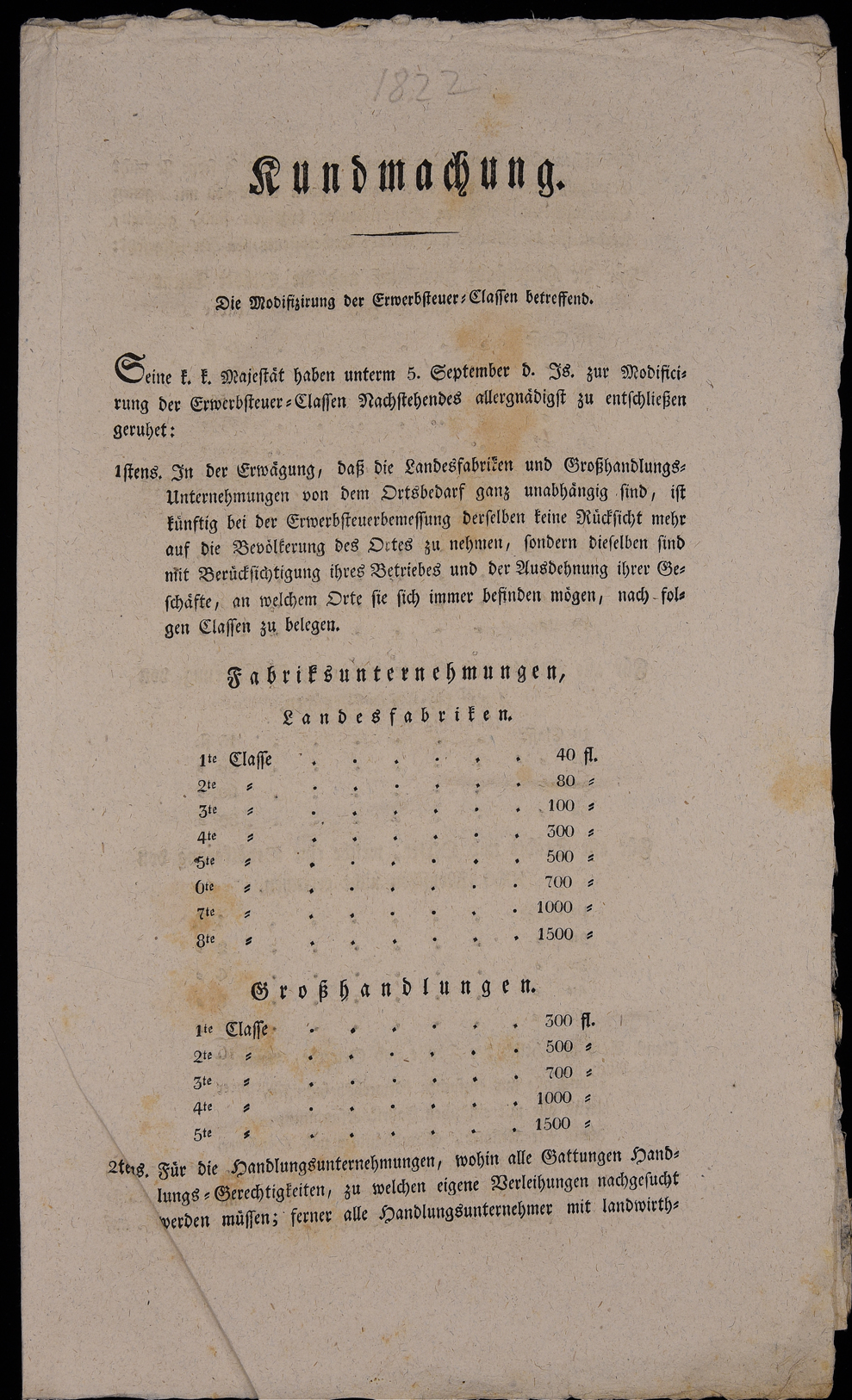 | Kundmachung die Modifizirung der Erwerbsteuer-Classen betreffend |