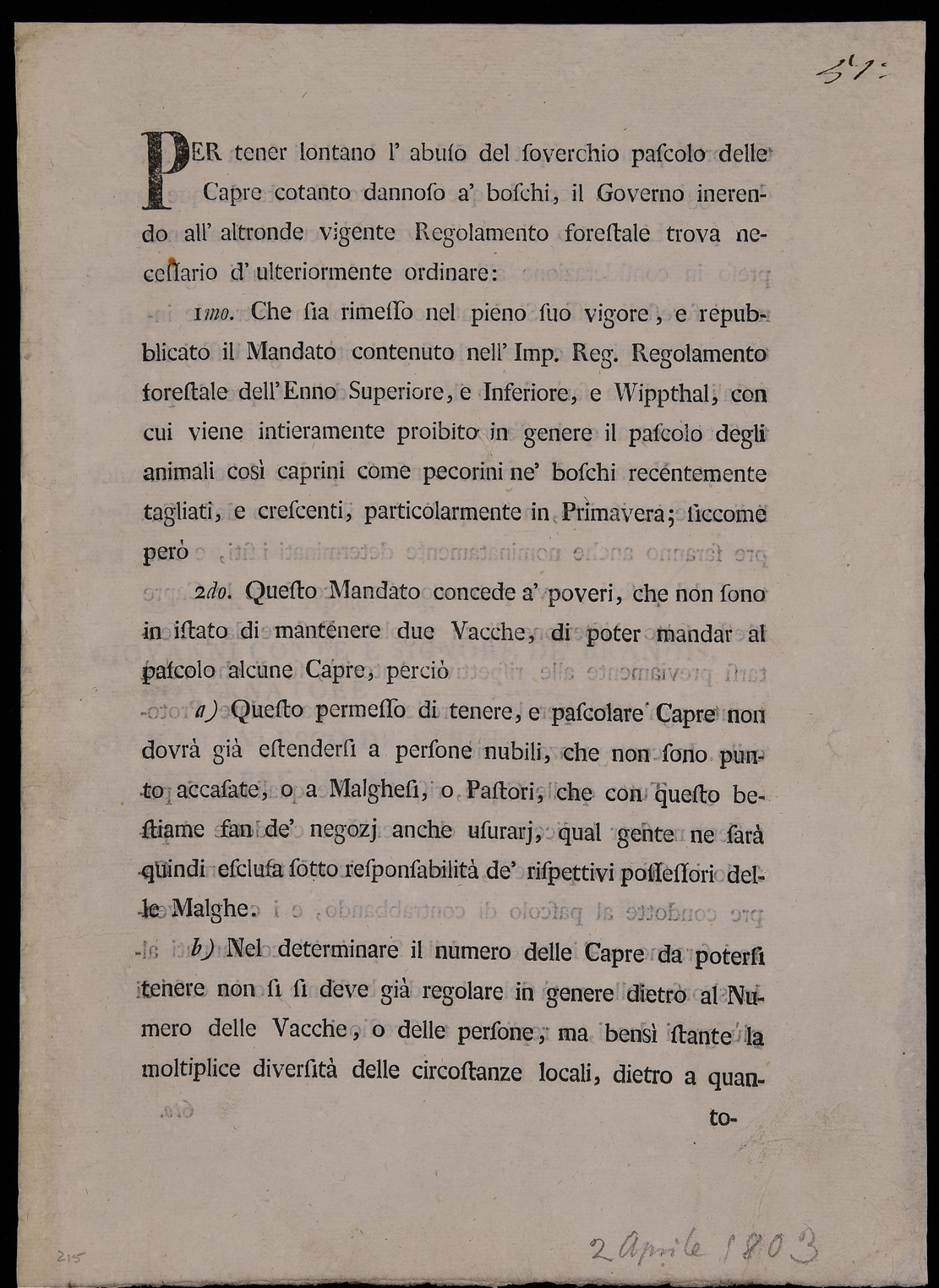 | Per tener lontano l'abuso del soverchio pascolo delle capre cotanto dannoso a' boschi … |
