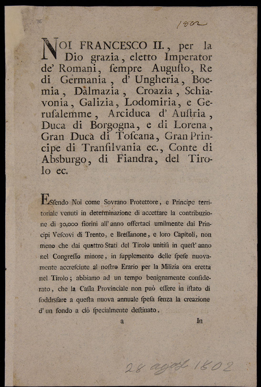 Noi Francesco II per la Dio grazia eletto imperator de' Romani sempre...
