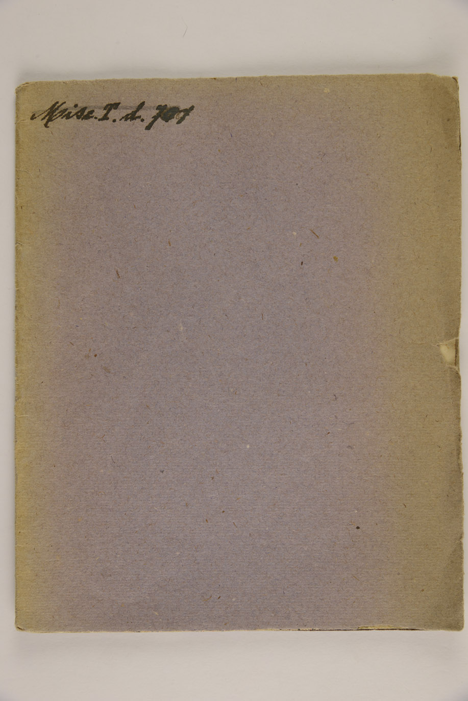 Legato in cartoncino vinaccia, mm. 180x145, ex libris della Biblioteca al verso del piatto anteriore, numero 19 manoscritto nel margine superiore esterno del frontespizio, margini inferiori rifilati, timbro della Biblioteca al frontespizio numero d'inventario P/8365 a c. B8v, antica segnatura di collocazione: Misc. T d 701 (?).