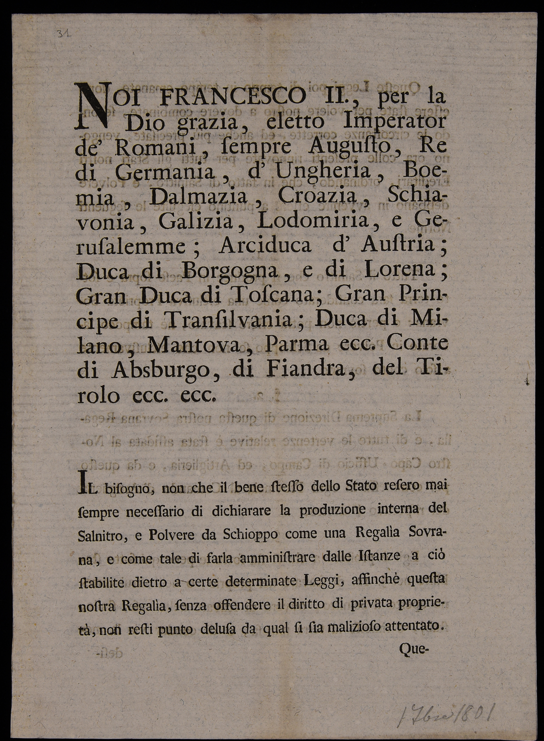 | Noi Francesco II., per la Dio grazia, eletto Imperator de' romani, sempre Augusto, re di Germania ... |