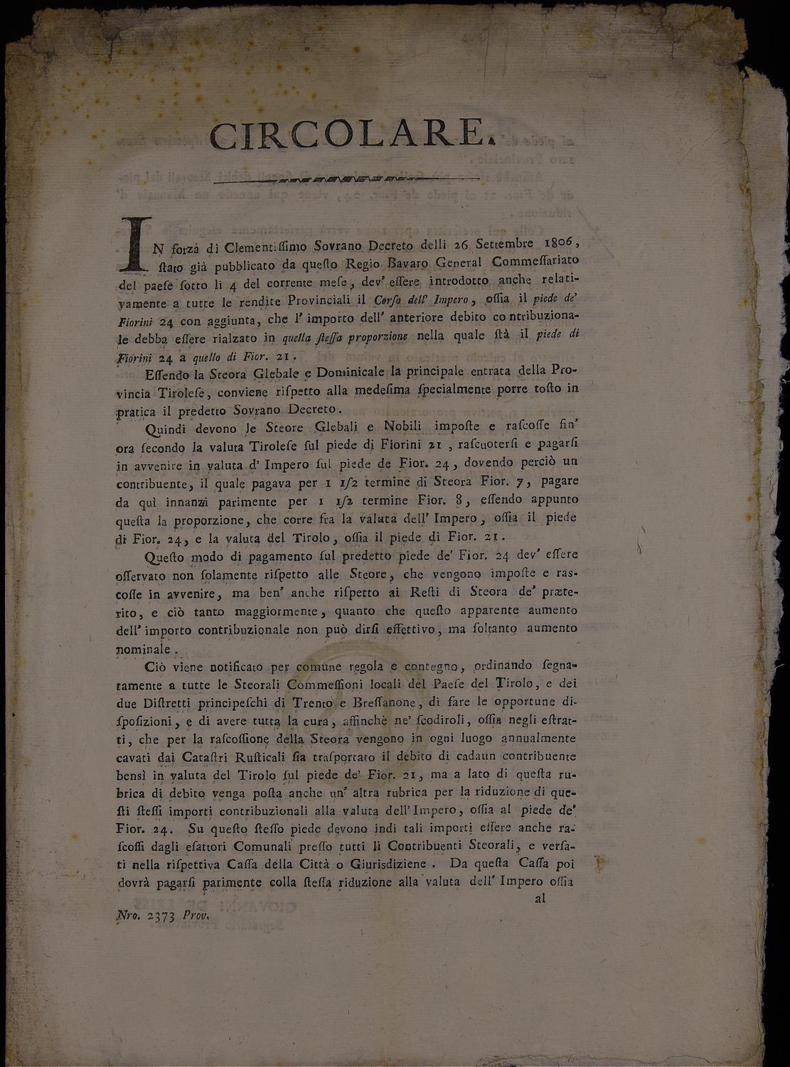 In forza di clementissimo sovrano decreto delli 26 settembre 1806, stato già pubblicato da questo Regio Bavaro general Commissariato del Paese ...