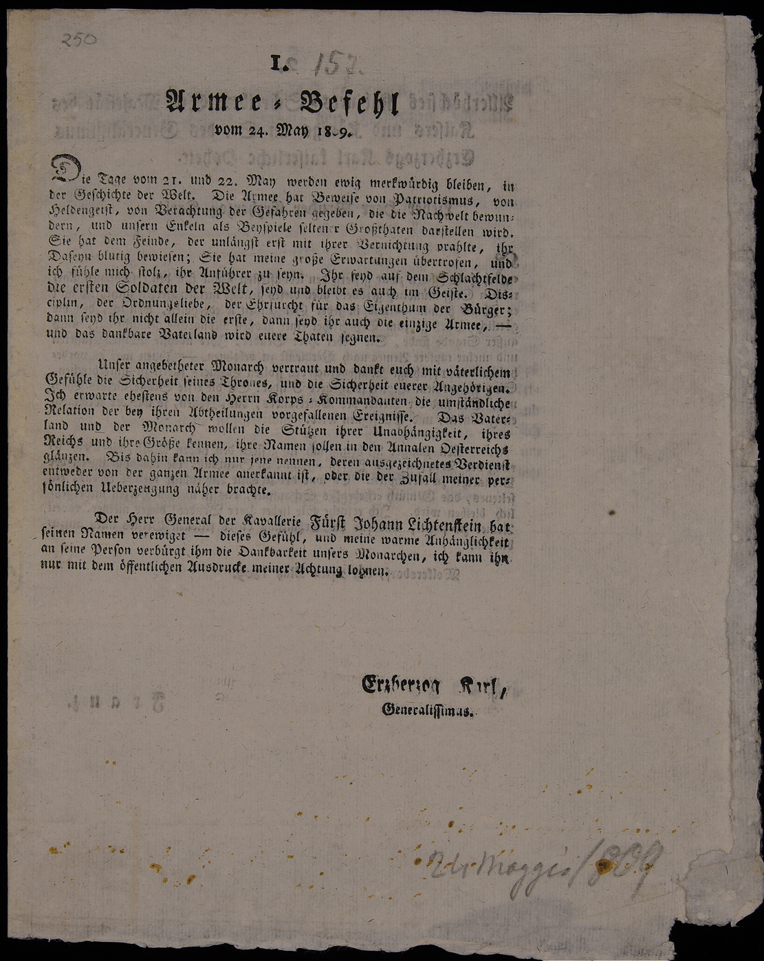 Armee-Befehl vom 24. May 1809.