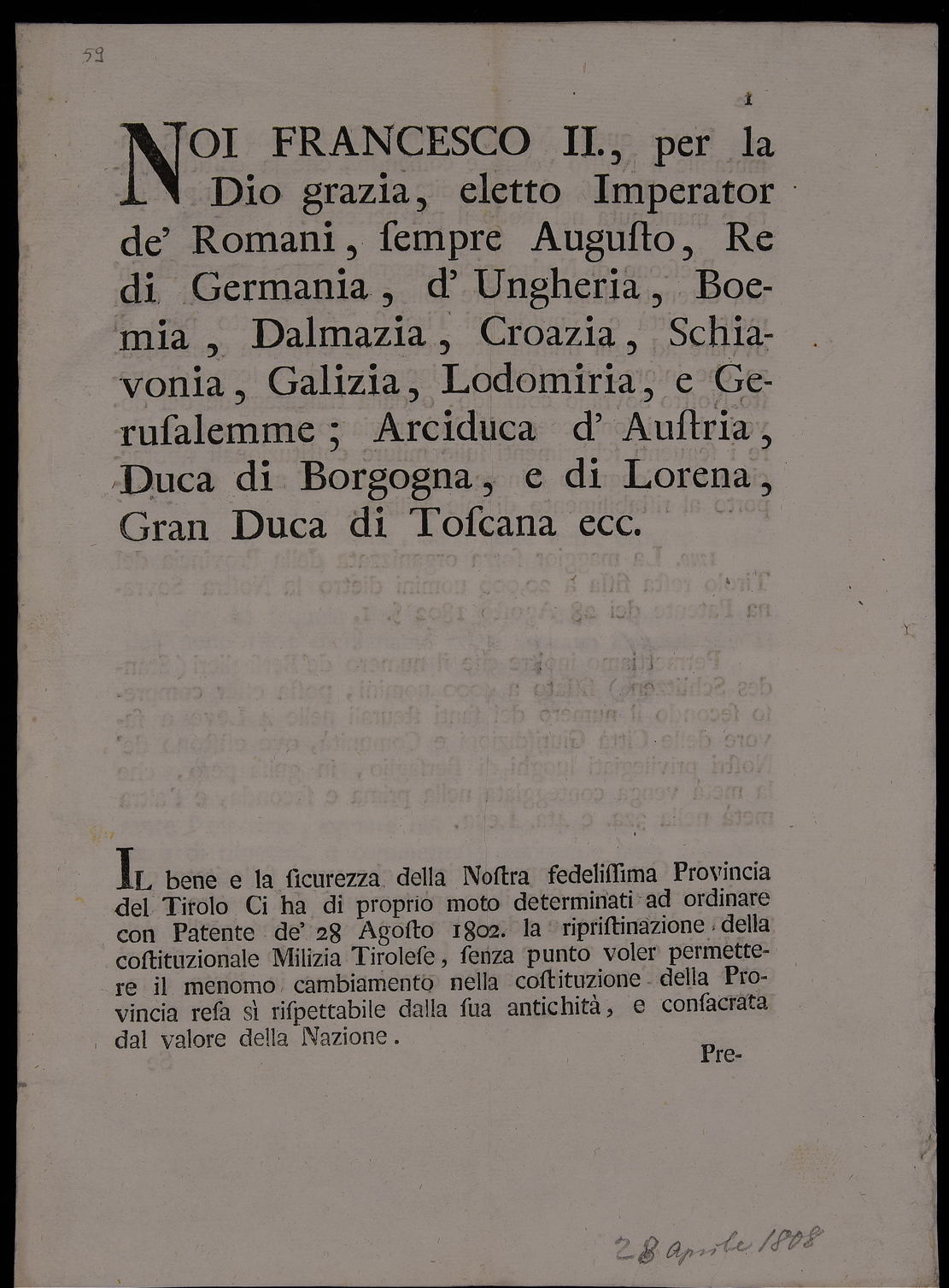 Il bene e la sicurezza della nostra fedelissima provincia del Tirolo ci ha di proprio moto determinati ad ordinare ...