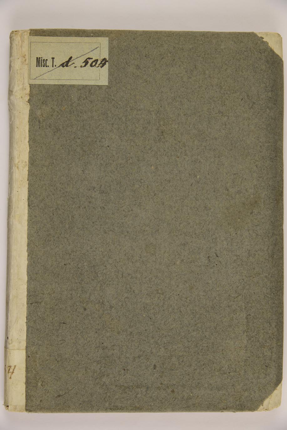 Legato in mezza pergamena semirigida (forse piena pergamena) con cartoncino blu incollato, tagli spruzzati di rosso, c. di guardia ant. e post., talloncino cartaceo al dorso con antica segnatura di collocazione, mm. 195x140x8, ex libris della Biblioteca al verso del piatto anteriore, esemplare privo di c. D8, numero d'inventario P/8547 a c. D7v, provenienza: Congregazione S. Maria Maggiore di Trento (due note manoscritte al frontespizio), antiche segnature di collocazione della Comunale: 7054, Misc T d 504.