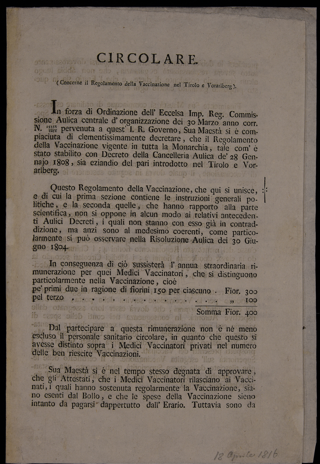 | Circolare (concernente il regolamento della vaccinazione nel Tirolo e Vorarlberg) |
