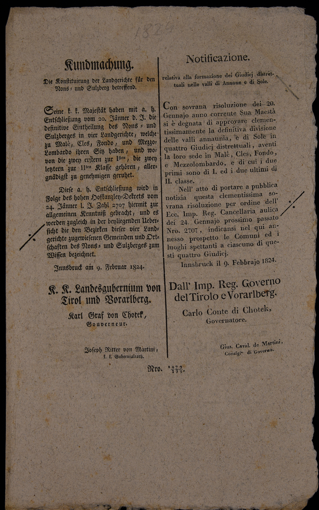 | Notificazione relativa alla formazione dei giudicj distrettuali nelle valli di Annone e di Sole |