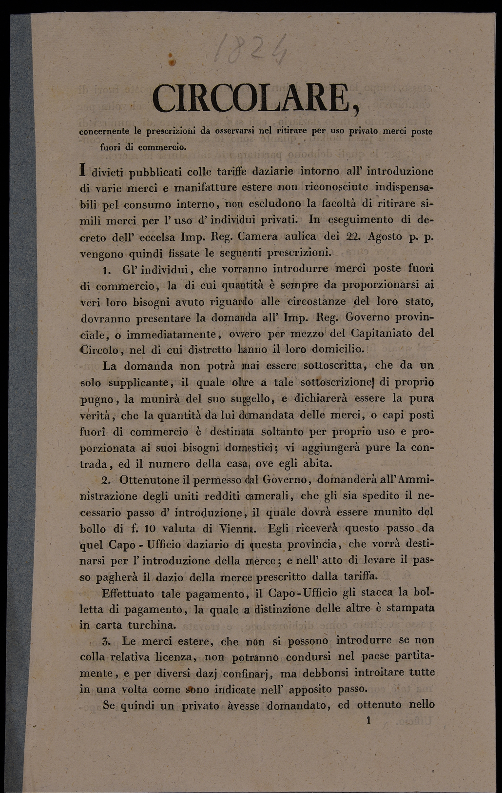 | Circolare, concernente le prescrizioni da osservarsi nel ritirare per uso privato merci poste fuori di commercio |