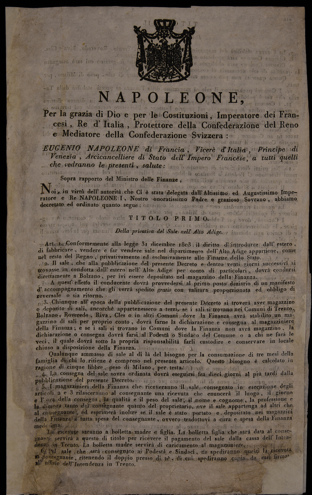 | Napoleone, per la grazia di Dio e per le costituzioni, Imperatore dei francesi, re d'Italia ... |