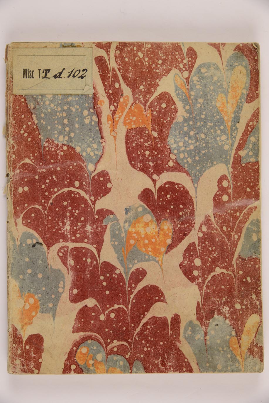 Legato in cartoncino policromo, mm. 170x130x5, ex libris della Biblioteca al verso del piatto anteriore, timbri della Biblioteca al frontespizio e alle cc. A3r e c. G4r, numero d'inventario P/7437 a c. G12r, antiche segnature di collocazione: 7156, Misc. TT d 102.