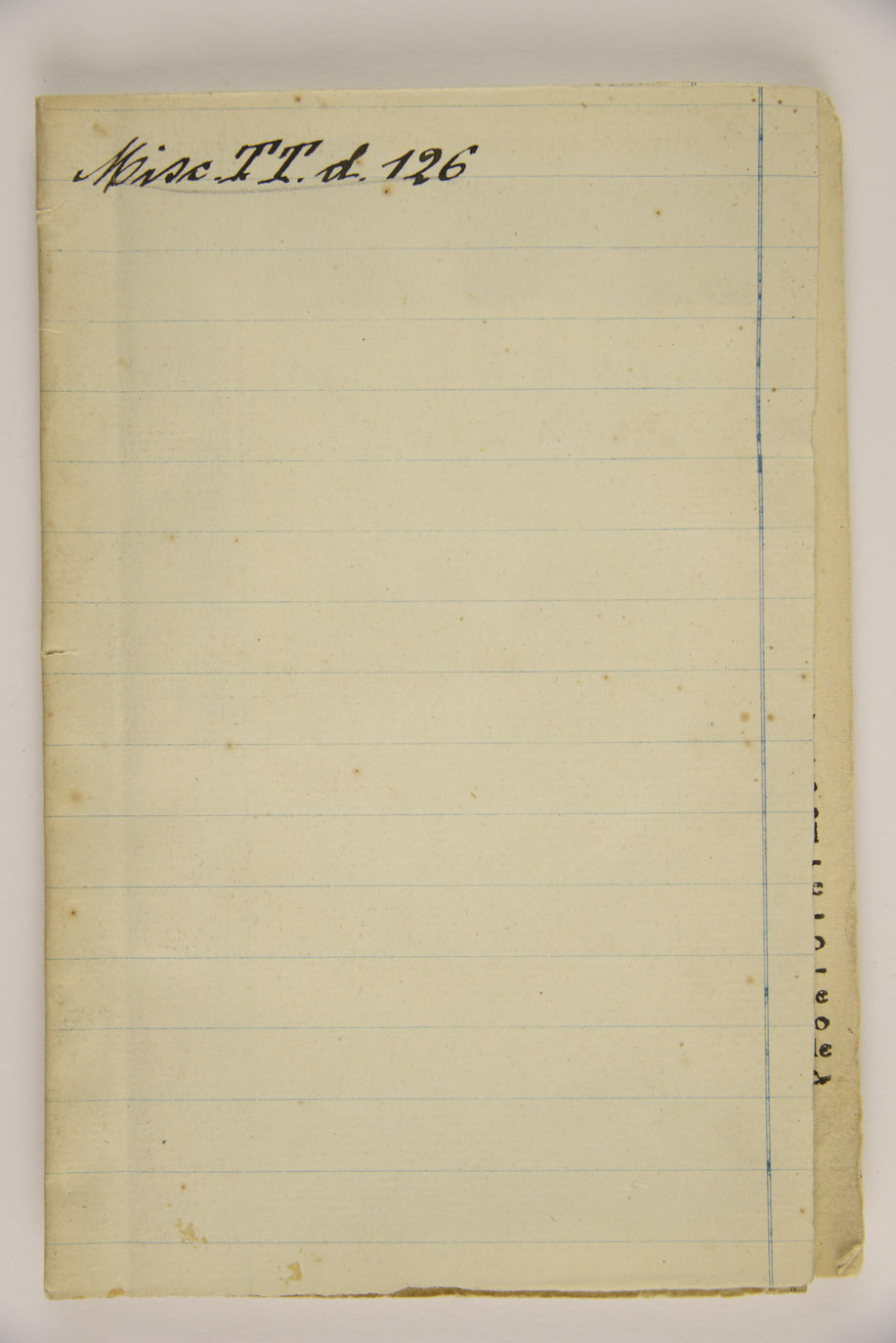 Legato in cartoncino, mm. 160x105, ex libris della Biblioteca al verso del piatto anteriore, numero 2 manoscritto in testa al frontespizio, timbro della Biblioteca al frontespizio e a c. A4v, numero d'inventario P/7414 a c. A4v, antica segnatura di collocazione: Misc TT d 126.