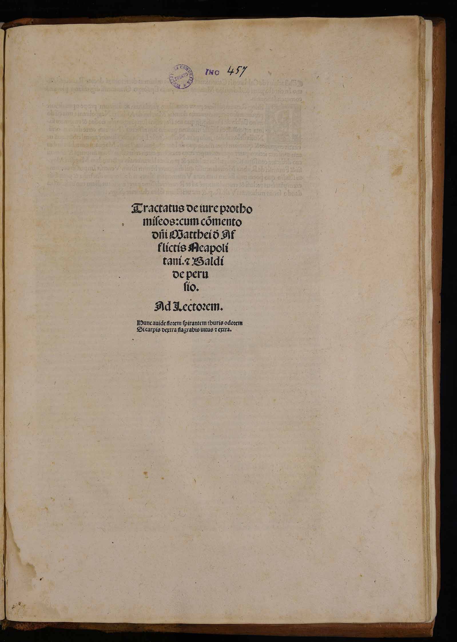 | Tractatus de iure prothomiseos cum commento domini Matthei d’Afflictis Naeapolitani & Baldi de Perusio |