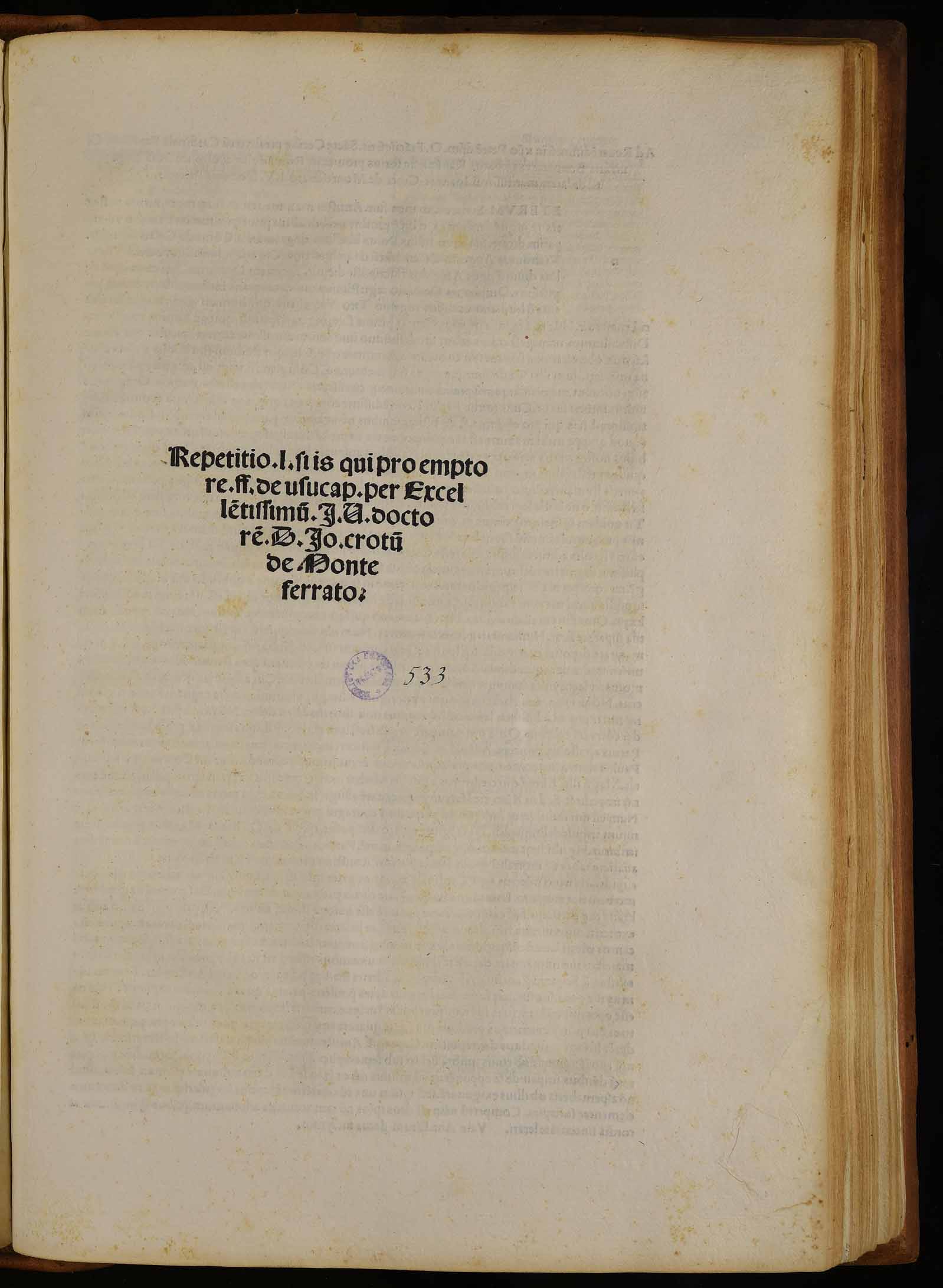| Repetitio l. si is qui pro emptore ff. de usucap. per excellentissimum I. U. doctorem D. Io. Crotum de Monteferrato |