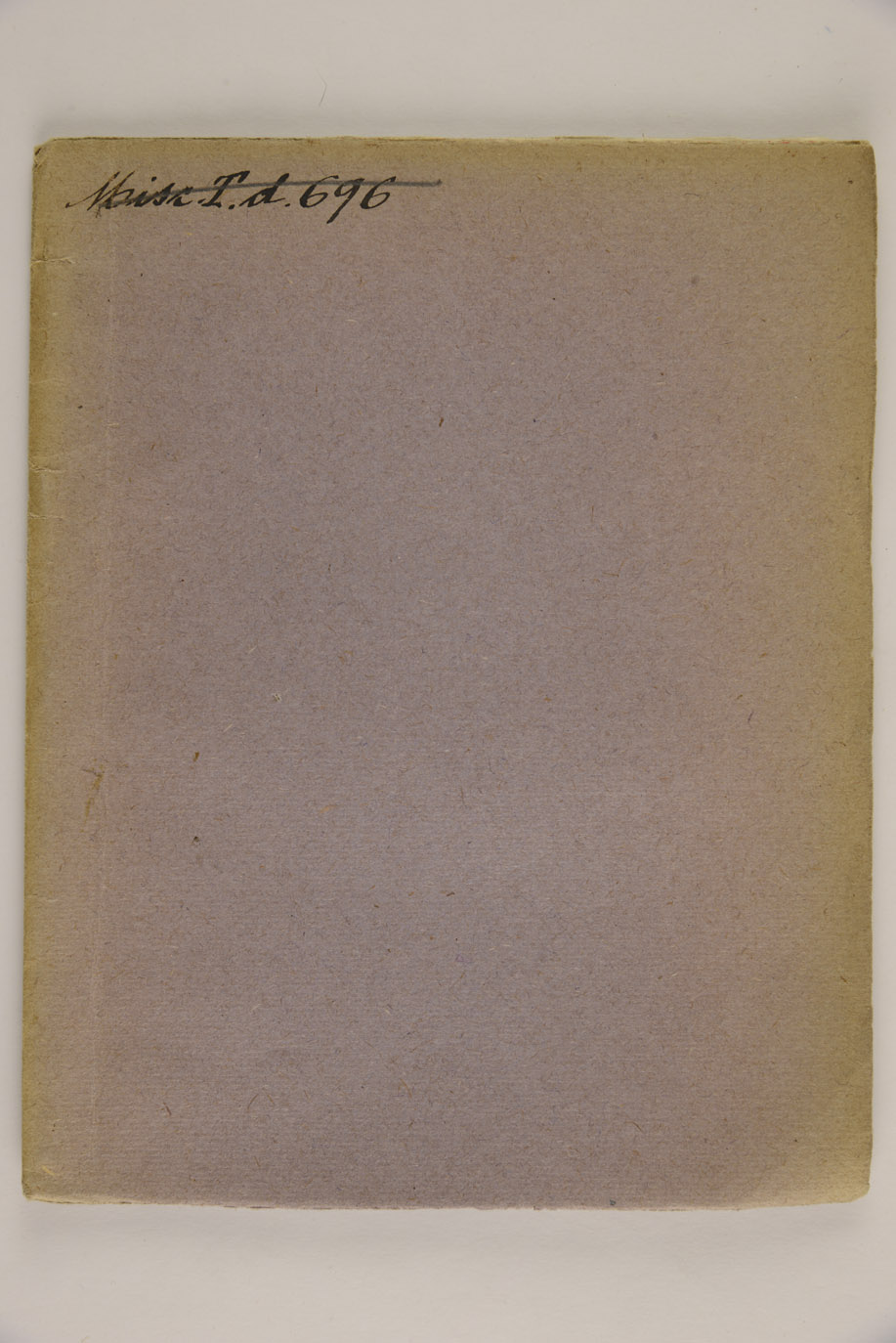 Legato in cartoncino vinaccia, mm. 185x145, ex libris della Biblioteca al verso del piatto anteriore, timbro della Biblioteca al frontespizio, numero d'inventario P/8487 a c. A8r, antica segnatura di collocazione: Misc. T d 696.
