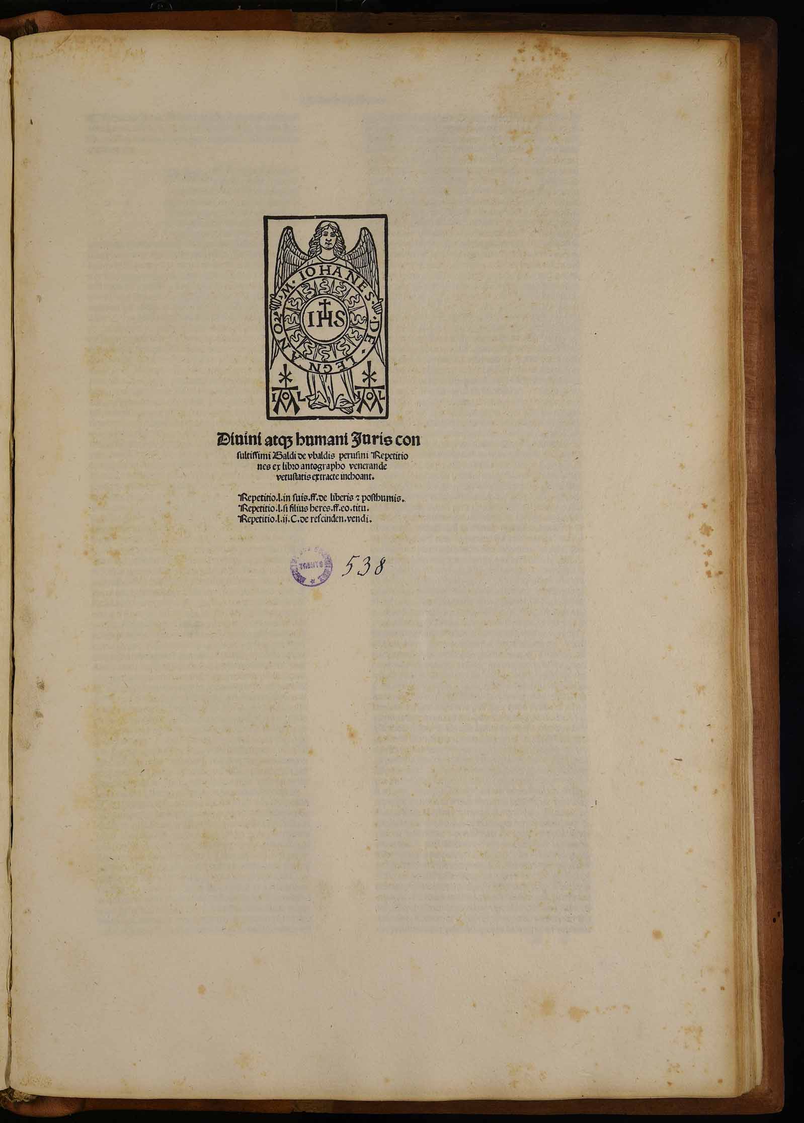 | Divini atque humani iuris consultissimi Baldi de Ubaldis perusini in repetitiones ex libro antographo venerande vetustatis extracte inchoant. Reptitio l. in suis ff. de liberis et posthumis, repetitio l. si filius heres ff. eo titu, repetitio l. ii C. de rescinden. vendi. |