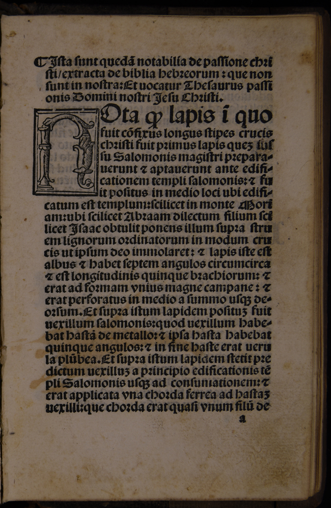 | Ista sunt quedam notabilia de passione christi extracta de biblia Hebreorum que non sunt in nostra et uocatur Thesaurus passionis domini nostri Jesu Christi |