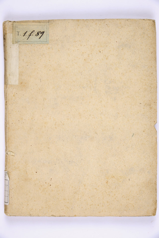Legato in pergamena semirigida, c. di guardia ant. e post., talloncino cartaceo al dorso con intitolazione manoscritta, mm. 210x160x20, ex libris della Biblioteca al verso del piatto ant., timbri della Biblioteca al frontespizio e a c. H4, numero d'inventario x/398 a c. H4v, antiche segnatura di collocazione: II I e 20, T 1 f 89.