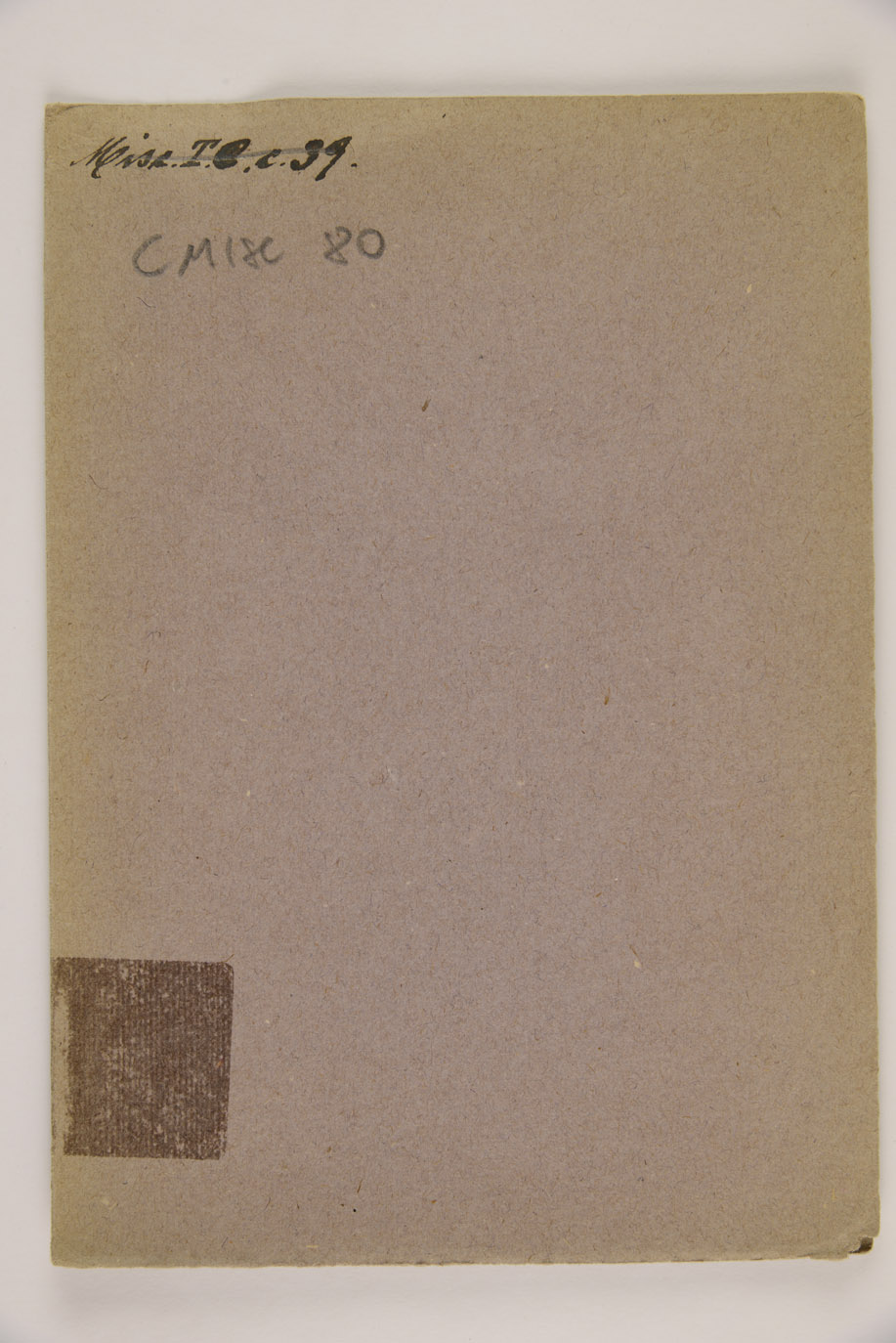Legatura in cartoncino di color vinaccia, ex libris della Biblioteca al verso del piatto anteriore, mm. 195x140. Nota a penna nel margine esterno superiore del frontespizio (N 2), nota di possesso al frontespizio nello stemma (WLS. MZ. CD), numero 414[.] a penna nel margine inferiore interno di c. B4v, forse residuo di una antica cartulazione: in precedenza probabilmente legato assieme alle edizioni BDT 27, BDT 32, BDT 38, BDT 44. Timbri della Biblioteca al frontespizio e a c. A4v, numero d'inventario P/12619 a c. A4v, antiche segnature di collocazione: Misc. TC c 39, G 2 op f 61.