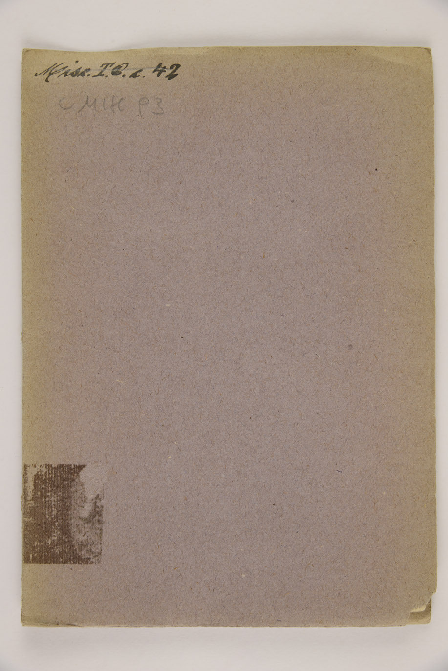 Legatura in cartoncino di color vinaccia, ex libris della Biblioteca al verso del piatto anteriore, mm. 195x140. Nota a penna nel margine esterno superiore del frontespizio (N 3), nota di possesso al frontespizio nello stemma (WLS MZ CD) datata 10 gennaio 1604, numero 311 a penna nel margine inferiore interno di c. A8v, forse residuo di una antica cartulazione: in precedenza probabilmente legato assieme alle edizioni BDT 27, BDT 32, BDT 35, BDT 44 Timbri della Biblioteca al frontespizio e a c. A8v, numero d'inventario P/12609 a c. A8v, antiche segnature di collocazione: Misc. TC c 42, G 2 op f 70.
