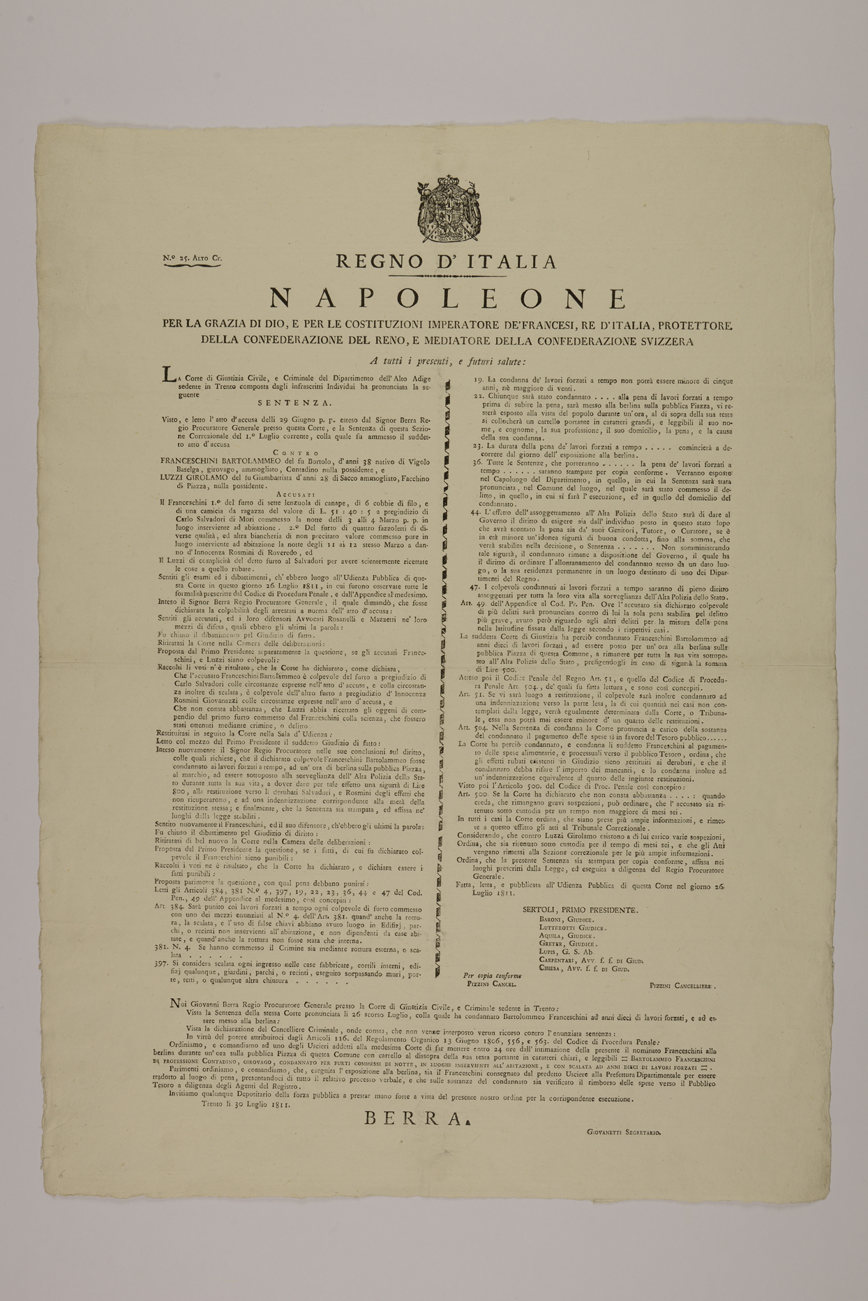 La Corte di Giustizia civile, e criminale del Dipartimento dell'Alto Adige sedente in Trento composta dagli infrascritti individui ha pronunciato la seguente sentenza ...