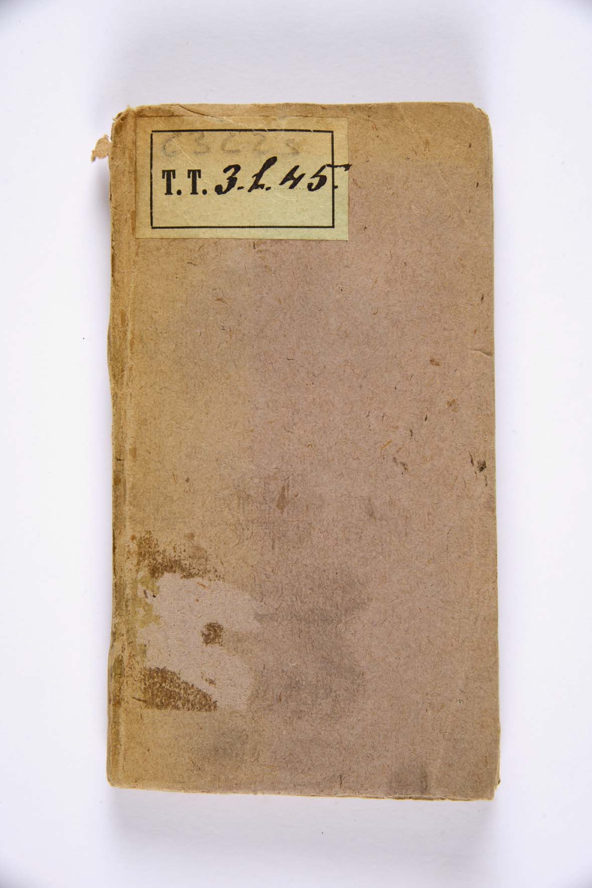 Timbri della biblioteca alle cc. A1v e F10v, ex libris della Biblioteca sul verso del piatto anteriore, nota di possesso al frontespizio di Giovanni Albano Giovannelli, prove di penna e tracce di calcoli a c. F10v. Legatura provvisoria in cartoncino vinaccia, XX secolo, mm. 135x75x10. Antica segnatura di collocazione: TT 3 l 45 (Biblioteca comunale di Trento). Numero d’inventario della Biblioteca comunale di Trento: P/13798 a c. F10v.