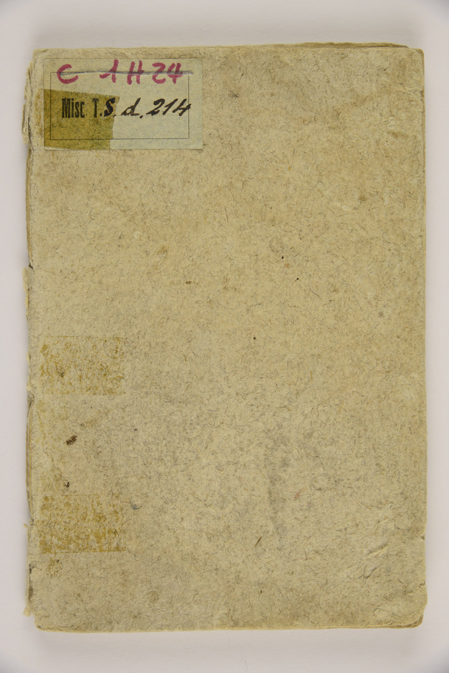 Legatura coeva in cartoncino di tipo archivistico, ex libris della Biblioteca al verso del piatto anteriore, timbri della Biblioteca al frontespizio e a c. C8v, numero d'inventario P/ 13203 a c. C8v, gore. Antiche segnature di collocazione: Misc. TS d 214, G 2 op g 9.