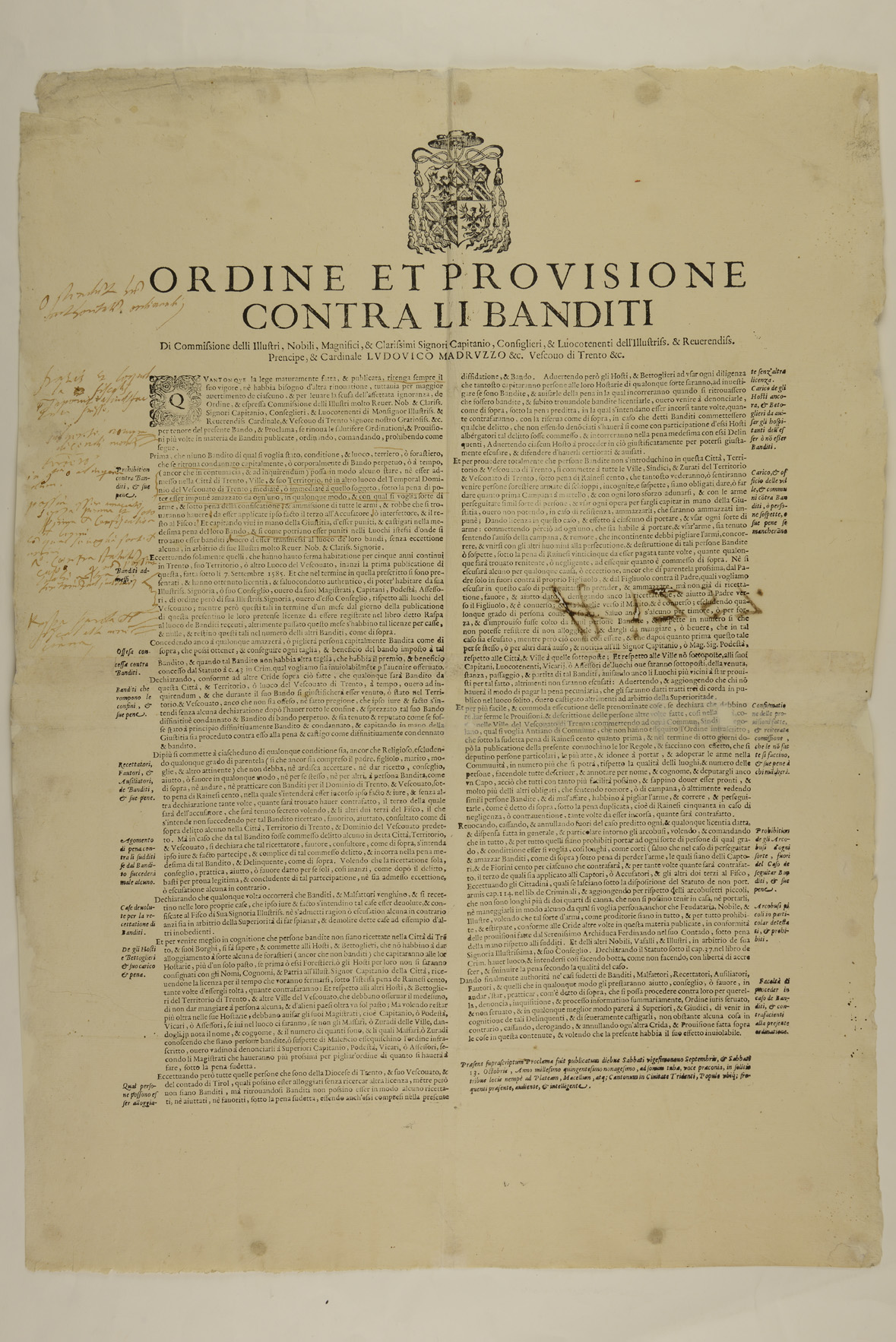 Proclama contro i banditi pubblicato il 29 settembre e il 13 ottobre 1590 da Lodovico Madruzzo, principe-vescovo di Trento