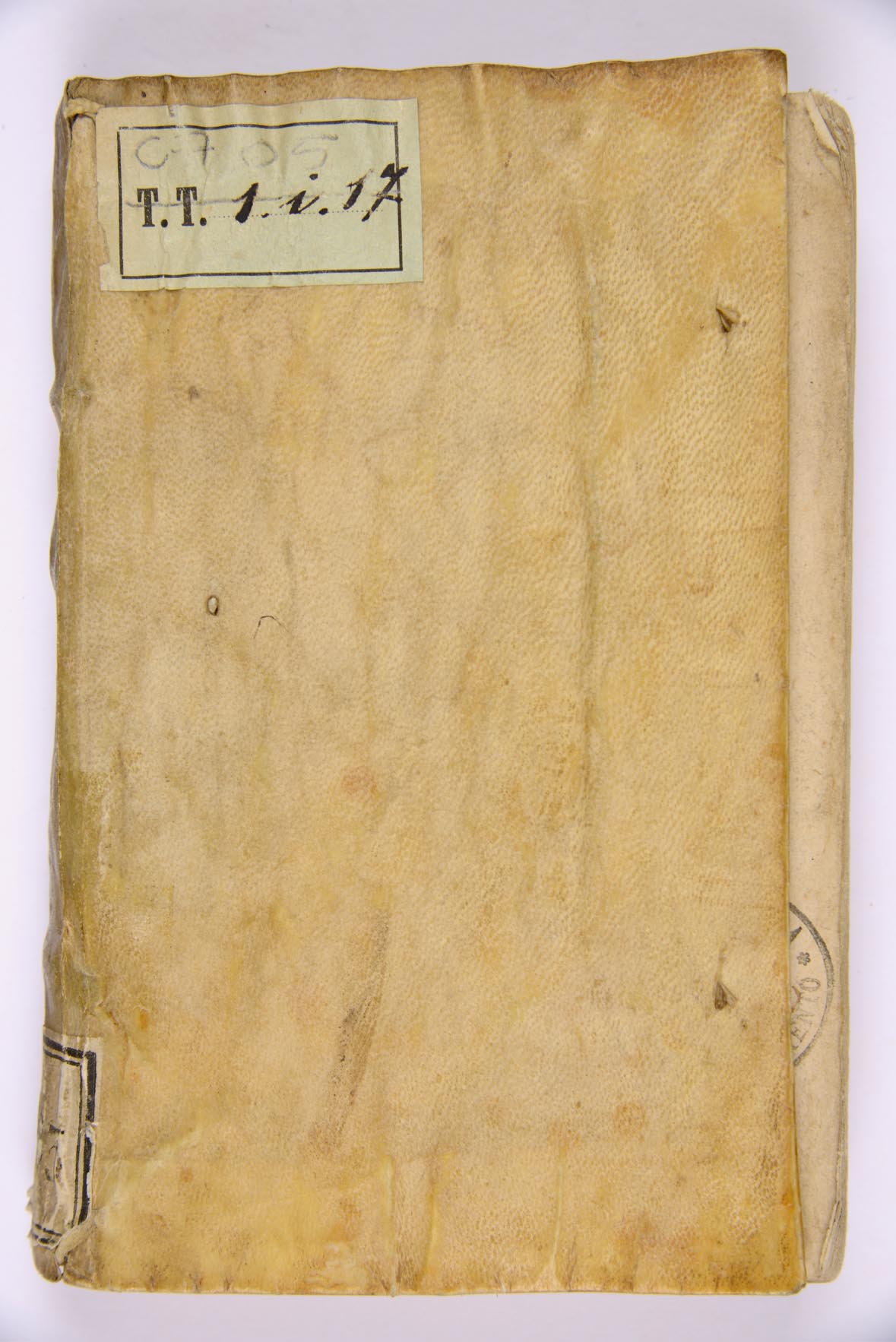 Prove di penna a c. P2r, Timbri della Biblioteca al frontespizio e alle cc. A2r e X8v, legatura coeva in pergamena floscia all’olandese senza carte di guardia, titolo manoscritto sul taglio inferiore, mm. 150x90x25. Antiche segnature di collocazione: 3663 (sul dorso, Mazzetti), TT 1 1 17, G 2 i 381 (Biblioteca comunale di Trento). Numero d’inventario della Biblioteca comunale di Trento: P/13642 a c. X8v
