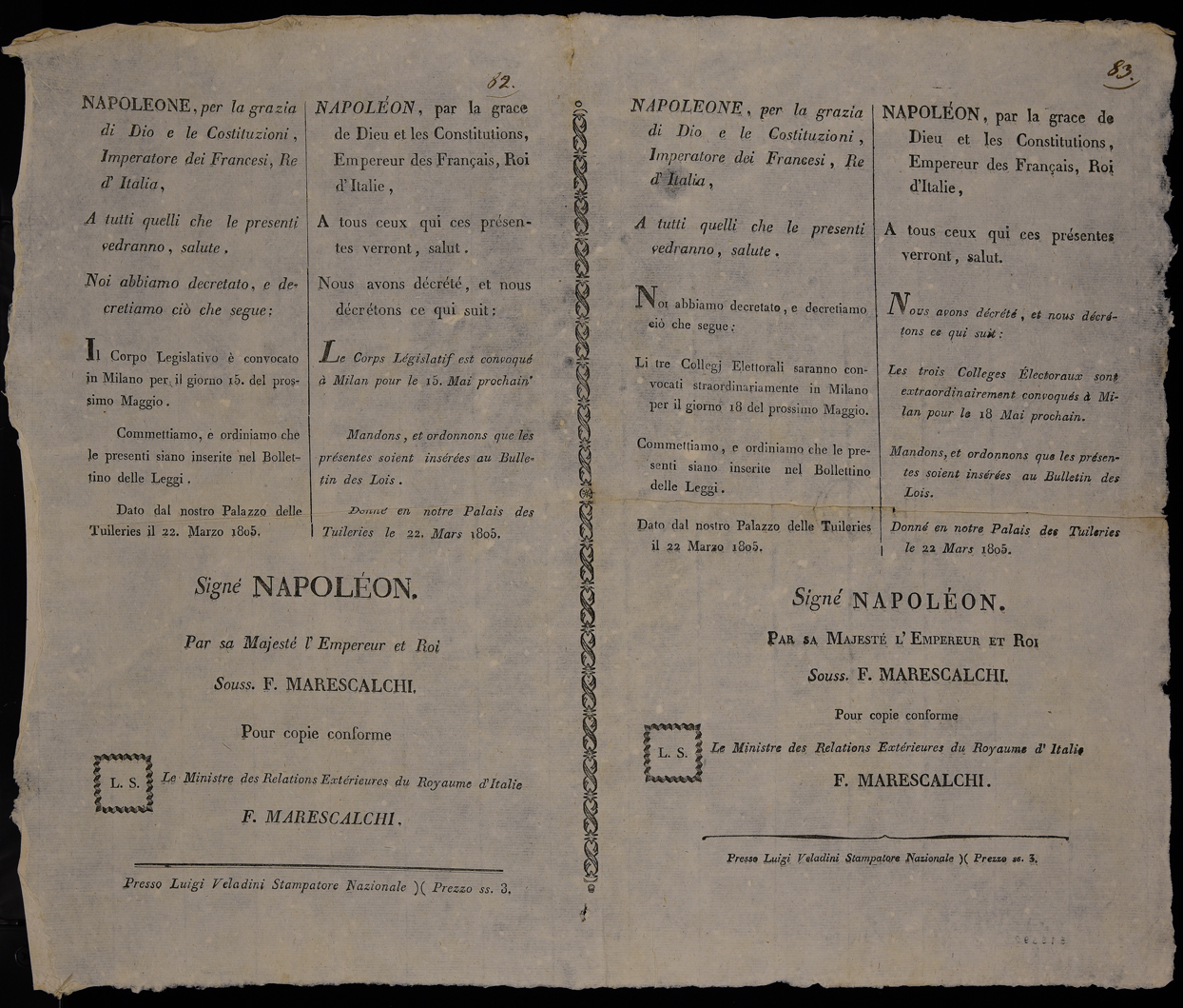 | Napoleone, per la grazia di Dio e le costituzioni, Imperatore dei francesi, re d'Italia, a tutti quelli che le presenti vedranno, saluti |
