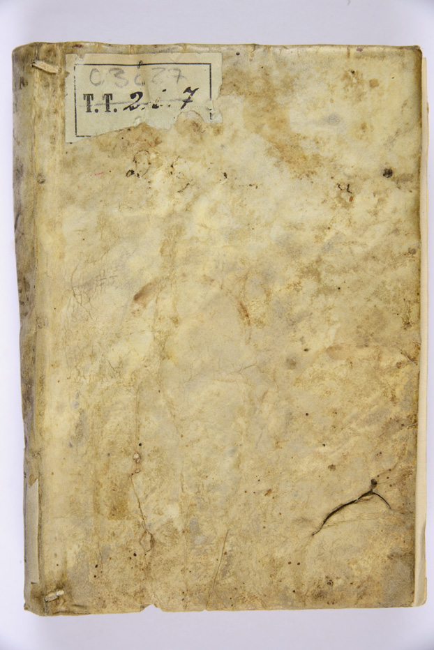 Legato in pergamena semi-rigida, c. di guardia ant., mm. 145x105x30, nota di possesso a c. 2F10v: ex libris clerici Andreae Battisti de Bisenello (ripetuta due volte), titolo manoscritto al dorso, talloncino cartaceo al dorso con antica segnatura di collocazione, conti al verso del piatto ant., timbri della Biblioteca alle cc. A11r e 2F9v (inchiostro nero, tipo C), sottolineatura e segno di attenzione alle cc. G2r e 2C6v, numero d'inventario P/13793 a c. 2F9v, provenienza: Collezione Mazzetti, antiche segnature di collocazione: 682 (al dorso, Mazzetti), 674 (al verso del piatto ant., Mazzetti?), TT 2 i 7 (Biblioteca).