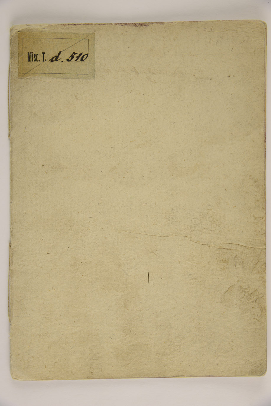 Legatura coeva in cartoncino, mm 190x140, ex libris della Biblioteca al verso del piatto anteriore, timbro della Biblioteca al frontespizio, numero d'inventario x/119 a c. A6v, provenienza: Collezione Mazzetti, antiche segnature di collocazione: 6795/97 (Mazzetti), Misc. T d 510 (Biblioteca).