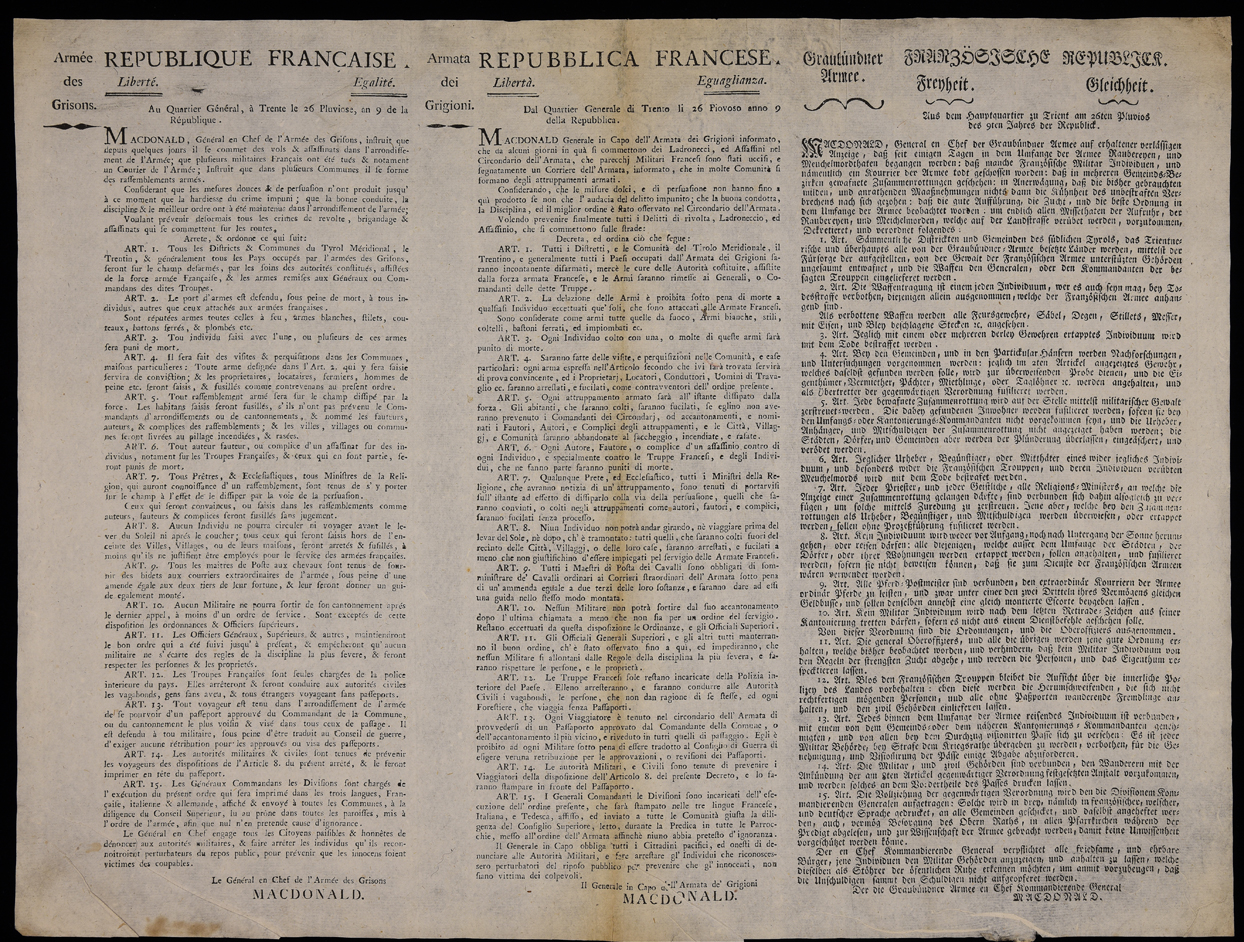 | Aus dem Hauptquartier zu Trient am 26ten Pluvios der 9ten Jahres der Republick |