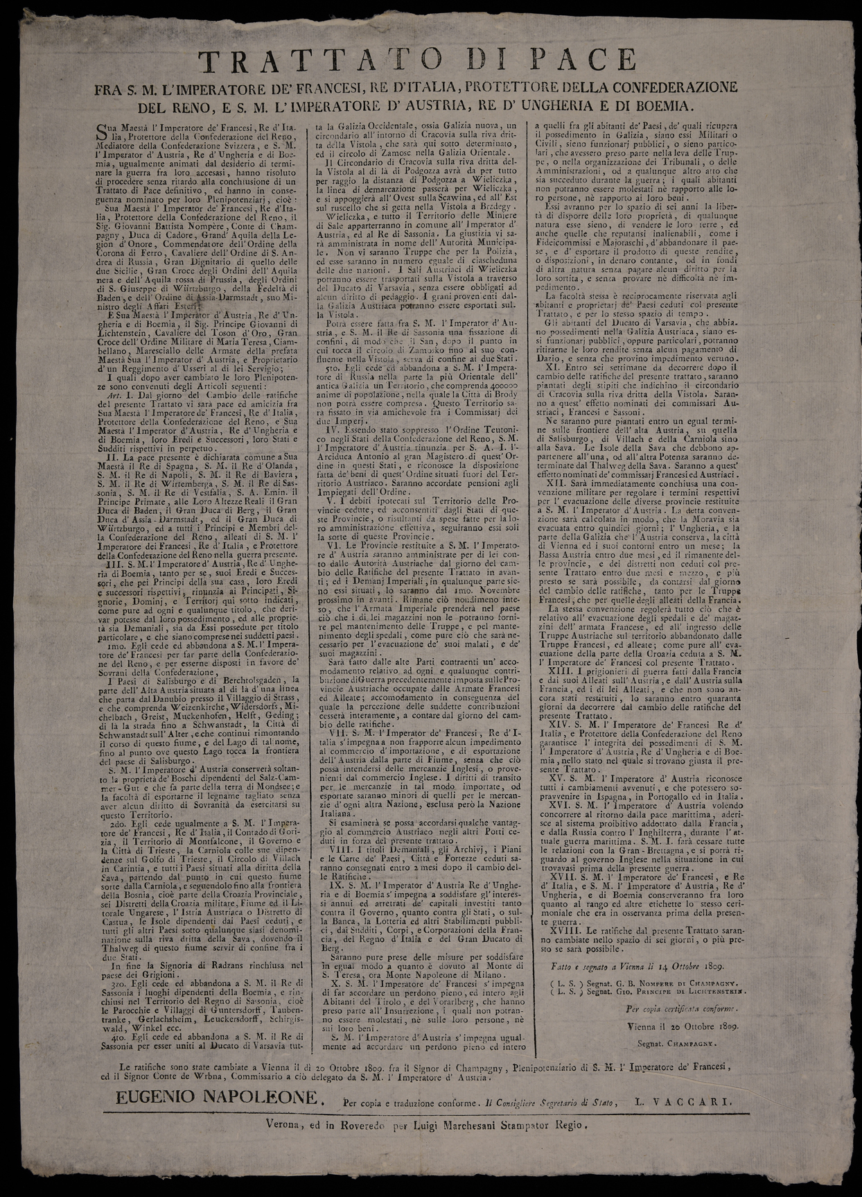 | Trattato di pace fra S.M. l'Imperatore de' francesi, re d'Italia, protettore della Confederazione del Reno, e S.M. l'Imperatore d'Austria, re d'Ungheria e di Boemia |