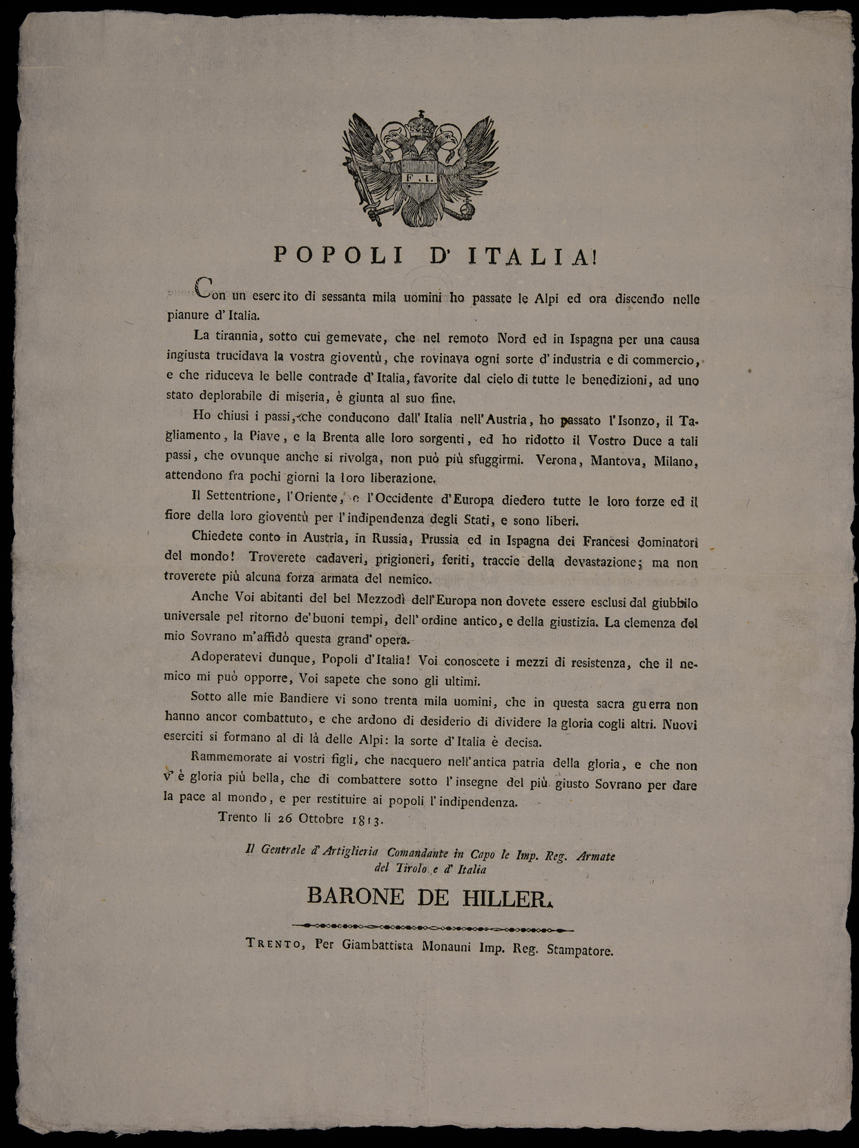 Con un esercito di sessanta mila uomini ho passate le Alpi ed ora discendo nelle pianure d'Italia ...